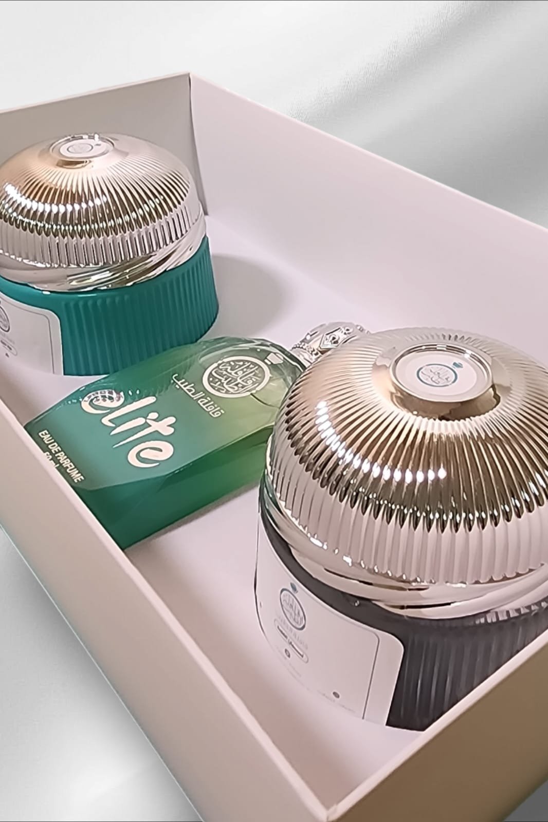 تتميز هذه المجموعة بعبير عطر سويسري فواح، فقط لأصحاب الذوق الرفيع، فهو مزيج خلاب من لبان المجد، عطر إيلايت، وبخور دجلين ذو التركيز عالي الجودة.
